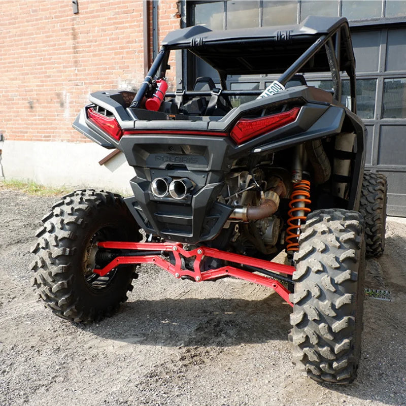 Each Center Exit dual system is a direct bolt-on to the Polaris factory exhaust mounts, and no fuel tuner is required. Simply install and go using the factory fuel management since the increased exhaust flow we’ve incorporated into the system design can be managed by the stock fuel management system. However, if you’re still looking for a power increase, adding a new tuner will increase fuel delivery, and the exhaust system will also benefit. With each direct bolt-on system, we provide the template required to cut out the rear facia on the vehicle and all necessary hardware to install. Anyone with basic mechanical skills can do the facia mods. Watch the install video for the complete process.