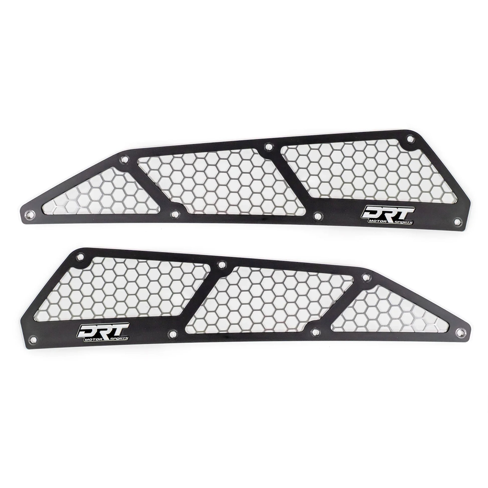This multilayer laser cut intake vent cover set includes a top plate finished in a black powder coat and a contrasting bright anodized mesh back plate. The kit includes DRT Motorsports Aluminum badges to complete the look.